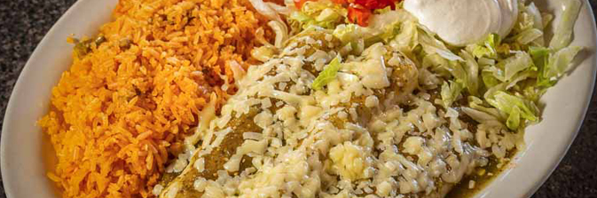 Buy one order of our delicious Enchiladas Verdes and get a second order at half price! Your choice of three chicken, beef, or cheese enchiladas topped with green sauce, lettuce, and sour cream. Served with rice.